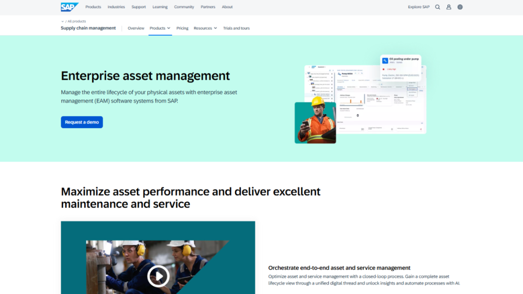 SAP Enterprise Asset Management is designed for large and complex organizations. It unifies the management of physical assets, supply chains, and facilities to streamline workflows. SAP EAM has a clear focus on sustainable operations. It utilizes risk management to extend equipment life and make organizations more sustainable through environmentally friendly disposal practices.